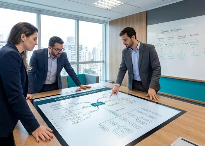 Não começamos gastando seu dinheiro. Primeiro, mergulhamos no seu negócio para entender suas margens, público e objetivos, desenhando o plano de ataque ideal.