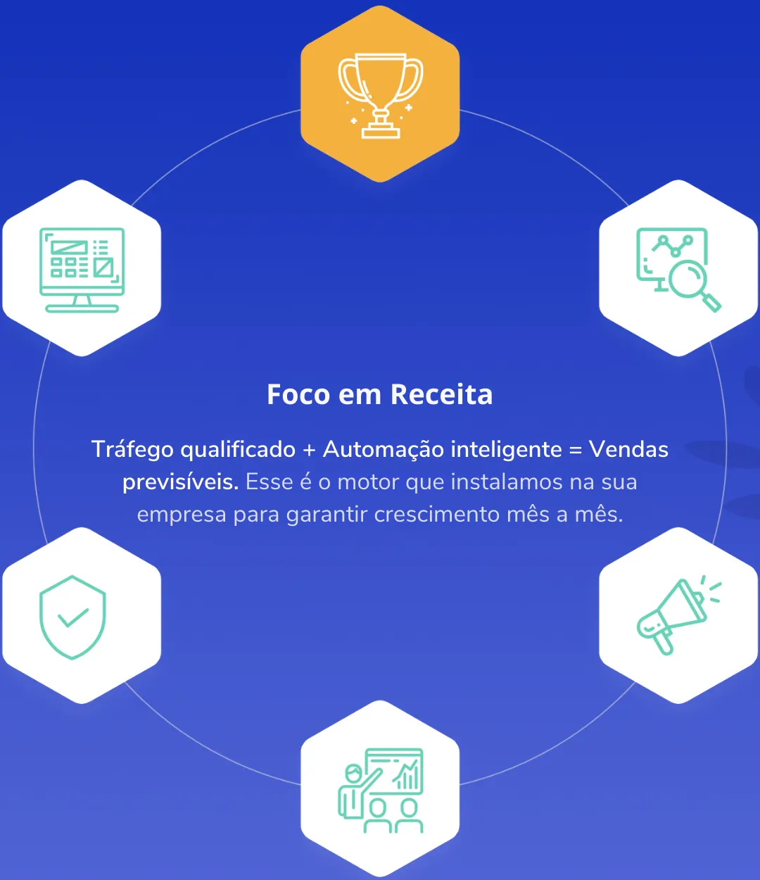 Não jogamos para empatar. Nossa equipe combina estratégias de tráfego pago, design persuasivo e automação comercial para colocar a sua marca em destaque.